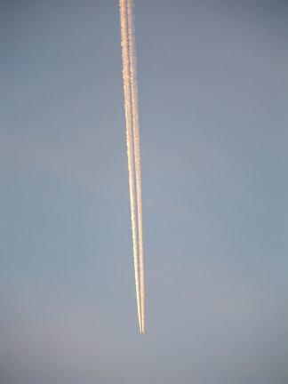 FEB. 26, 2004The day started with chemtrails. The weather report said "Clouds were predicted for the afternoon, but that there were already a couple clouds in the sky." In keeping with tradition, the weather report was completely wrong, not a single cloud all day, but there were enough chemtrails to block out the sun.