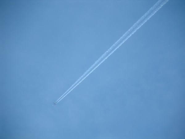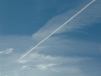 chemtrail from the left and a white chemtrail on the right